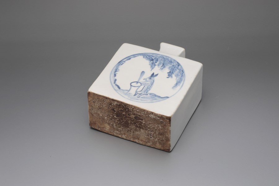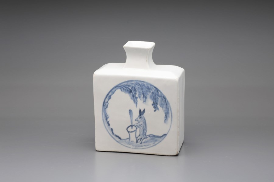 李朝青花兎餅つき角瓶