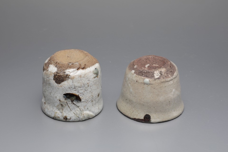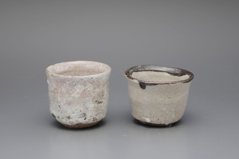 左:斑唐津筒酒盃